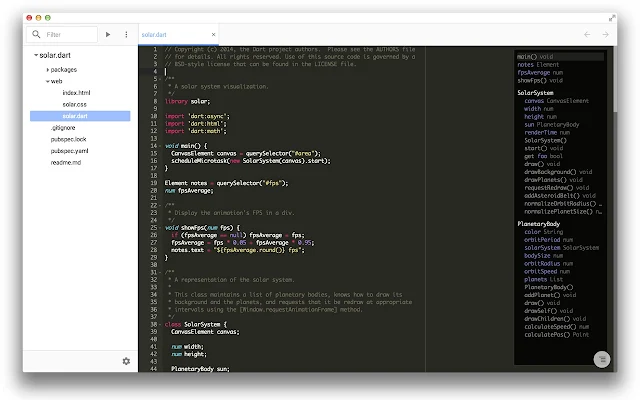 Chrome Dev Editor (CDE) is a developer tool for building apps on the Chrome platform - Chrome Apps and Web Apps. CDE has support for writing applications in JavaScript or Dart, and has Polymer templates to help you get started building your UI. CDE also has built-in support for Git.