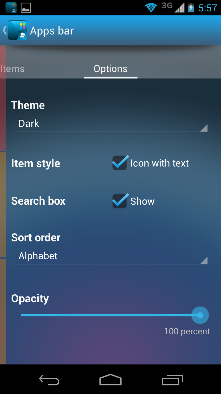 Sidebar nos permite la personalización, ya que podemos cambiar el estilo visual de las barras, podemos escoger entre el tema "light", "Holo" y "dark".